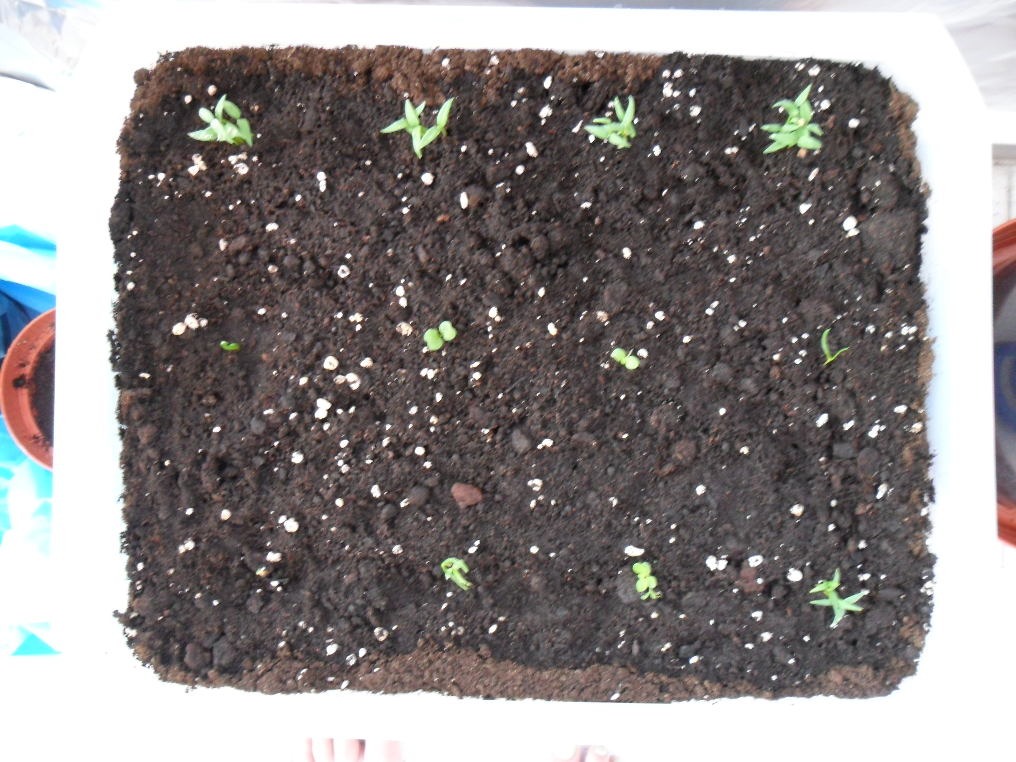 En la bolsita de semillas hay de bastantes tipos (por algo era «Mezcla de lechugas») e intento hacer una plantación lo más racional posible: las semillas grandes ellas solas, las medianas de dos en dos y las pequeñas de tres en tres. Procurando que estén semillas del mismo tipo juntas.