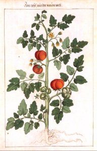 Según la wiki, que vuelve a ser el primer lugar para ir haciéndonos una idea, se les llamó en Italia «pomo d’oro» (manzana de oro) y en Francia «pomme d’amour» (manzana del amor), cuando llegaron a Europa. En la web Historia de la gastronomía (de donde por cierto he sacado las imágenes que ilustran el post) cuentan un montón de cosas interesantes sobre su origen y cómo ha ido moviéndose por todo el mundo. Una de las cosas que más me han llamado la atención de los distintos artículos es que el «Ketchup» o «catchup» viene, probablemente, de una salsa china llamada «ke-tsiap».