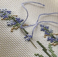 Las agujas es algo tan fácil de conseguir en una merceria y tan personal que no diré nada más allá que ha de ser de un tamaño acorde con el entramado y el hilo. Si estamos haciendo un bordado de un solo hilo en trama muy tupida, no tiene sentido usar una aguja gruesa… el sentido común nos puede guiar en esto.